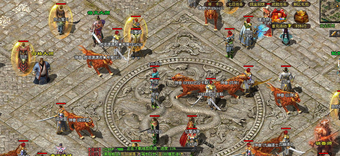 - 行会玩家:多BOSS活动副本,团队收益丰富。