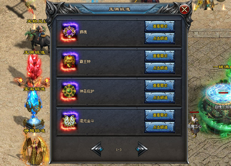 - 玉佩系统:通过永恒石与神器碎片打造高阶玉佩,强化防御、攻击与生命上限。
