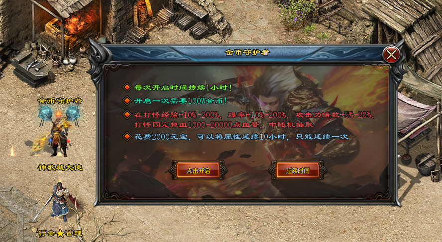 - 金币守护者:全天开放活动,消耗金币或元宝即可获得爆率与经验增益。