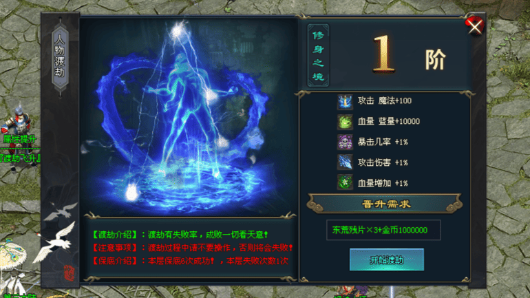 - 渡劫飞升:飞升至第九阶可解锁新地图与高级BOSS,全属性+15%,并伴随专属称号“渡世真神”。